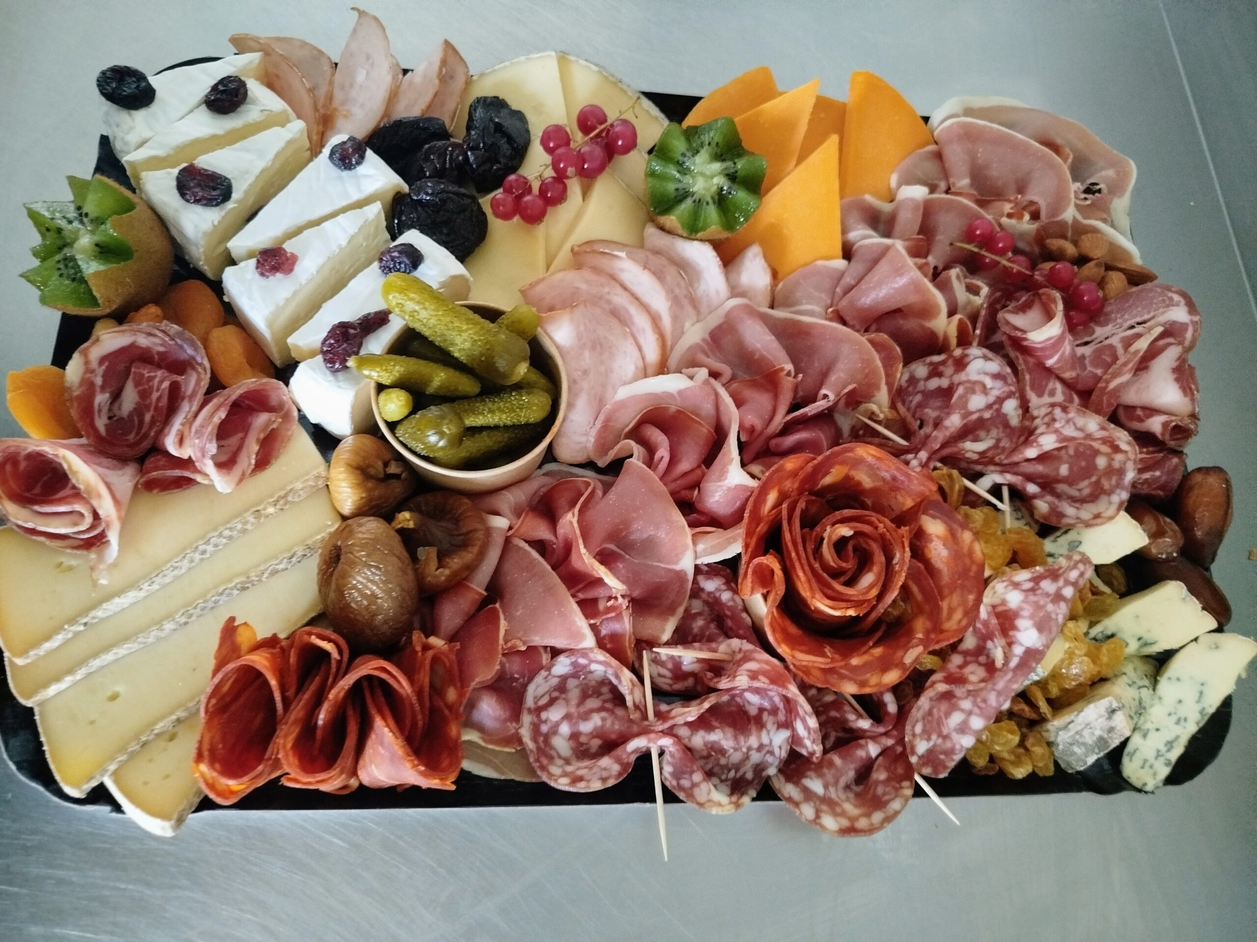 Plateau mixte à partager, réunissant une sélection gourmande de charcuteries et de fromages.